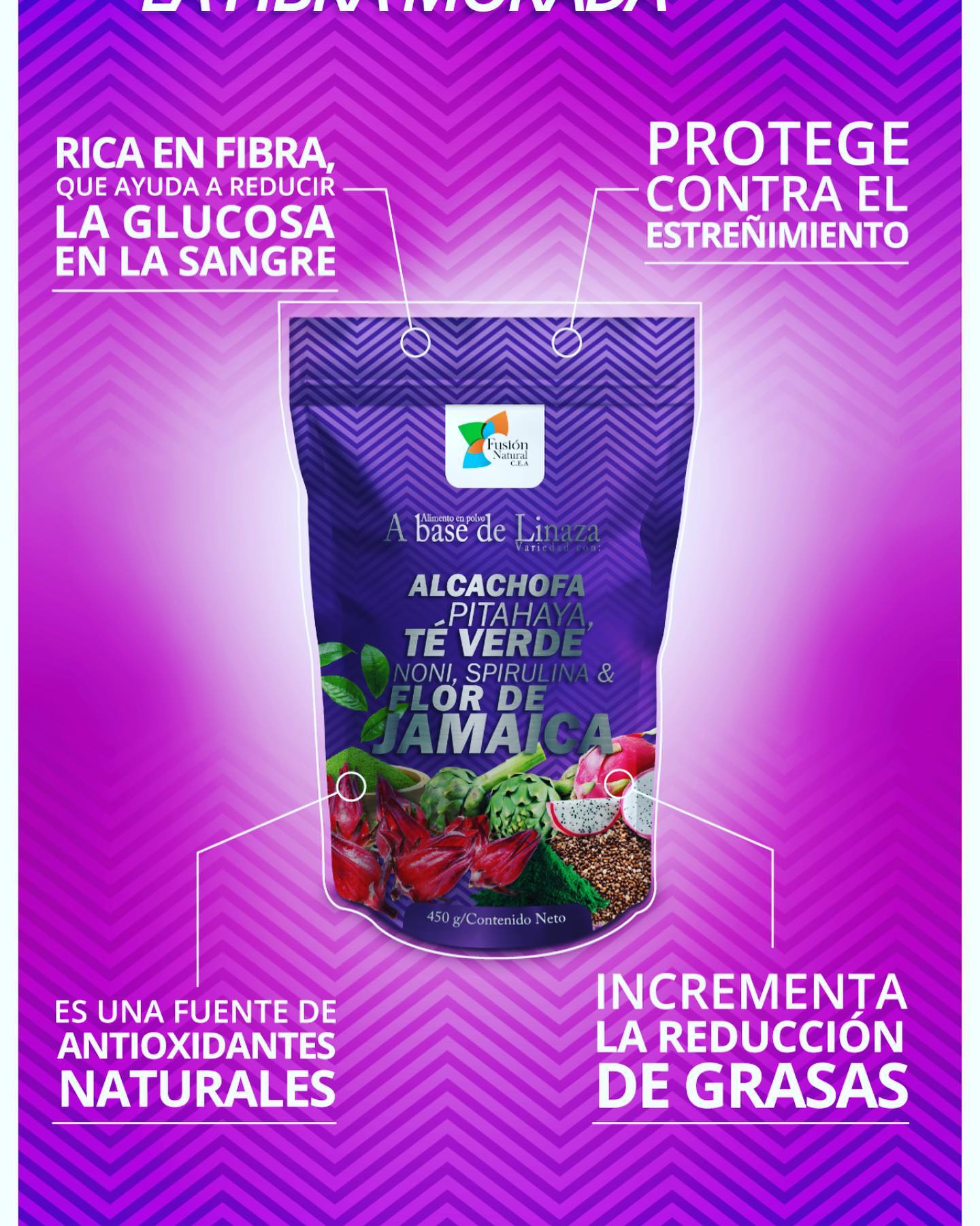 Base de Linaza con Alcachofa, Pitahaya, Chía, Té Verde, Noni, Spirulina & Flor de Jamaica – 450g