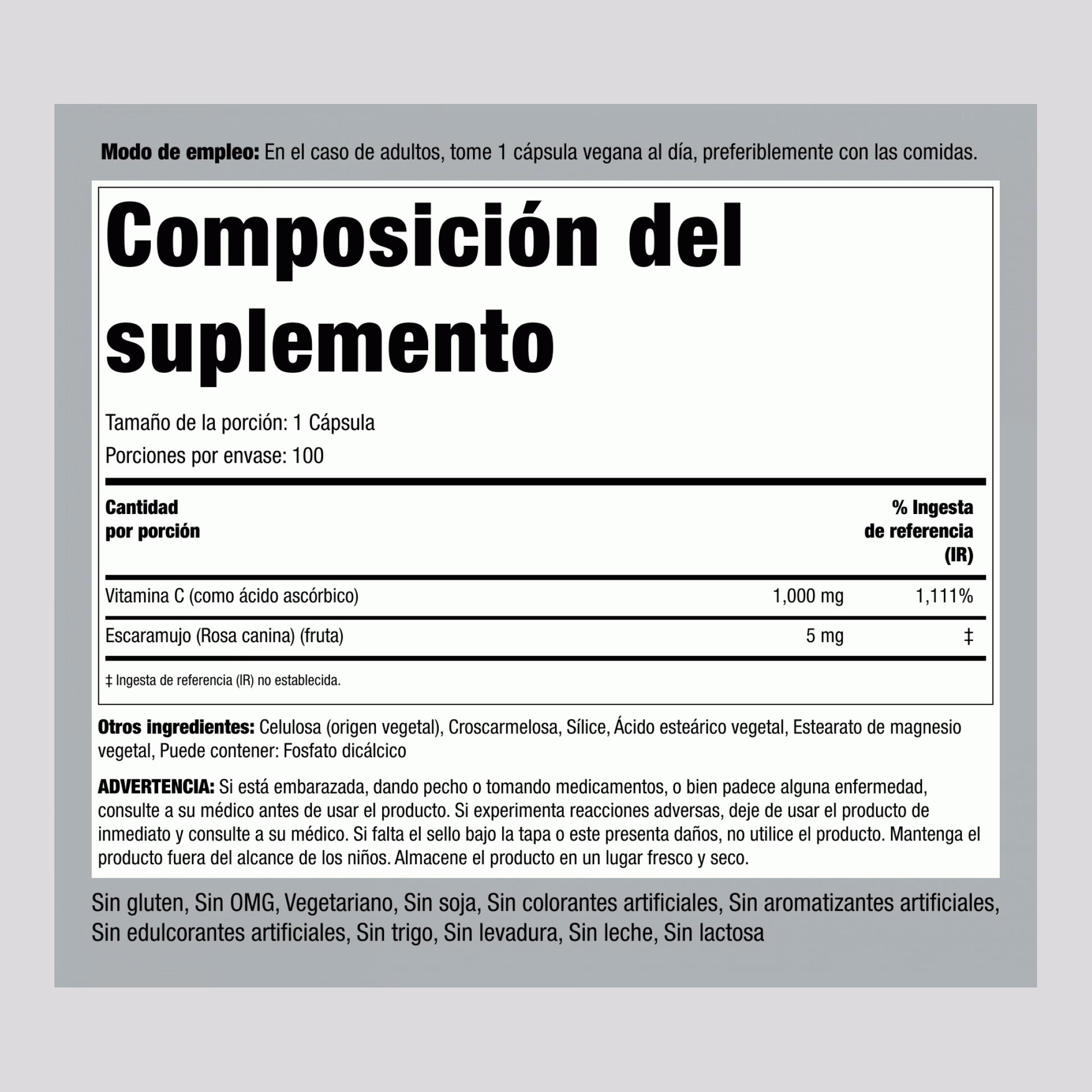 1000 mg de Vitamina C por porción: potente antioxidante esencial para la defensa contra agresores externos.